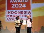 Caption: Penyerahan hadiah juara 1 IMA UMKM Award 2024 Kategori Wisata secara simbolis oleh President IMA, Suparno Djasmin (kanan), kepada Yuliza Zen