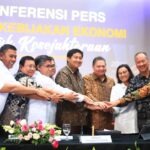 Caption: Menteri Koordinator Bidang Perekonomian, Airlangga Hartarto (keempat dari kanan), Menteri Keuangan, Sri Mulyani Indrawati (ketiga dari kanan), Menteri Perindustrian, Agus Gumiwang