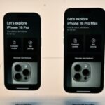 Caption:Produk iPhone terbaru Apple: iPhone 16 Pro dan iPhone 16 Pro Max dipajang di toko Apple di The Grove, Los Angeles, California