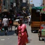 Caption:Seorang perempuan tampak menikmati es krim saat ia berjalan di tengah pasar di Bengaluru, India, pada 24 April 2024. (Foto: Reuters/Navesh Chitrakar)