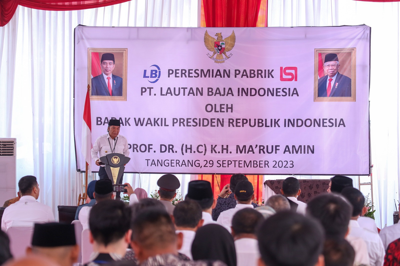 Banten, Fixsnews.co.id- Penjabat (Pj) Gubernur Banten Al Muktabar mendampingi Wakil Presiden RI KH Ma’ruf Amin meresmikan pabrik baja PT. Lautan Baja Indonesia (LBI). Pabrik baja ini merupakan ekspansi dari PT. Lautan Steel Indonesia di Telagasari, Kecamatan Balaraja, Kabupaten Tangerang, Jum’at (29/9/2023).