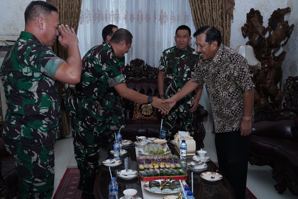 Dalam suasana penuh kekeluargaan, Danjen Akademi TNI menyerahkan bingkisan sebagai bentuk silaturahmi sekaligus menyampaikan salam hormat Panglima TNI Jenderal TNI Agus Subiyanto. “Kedatangan kami menyampaikan salam hormat Panglima TNI, dan sebagai junior kami siap menerima petunjuk serta arahan dari Bapak,” ujarnya.
